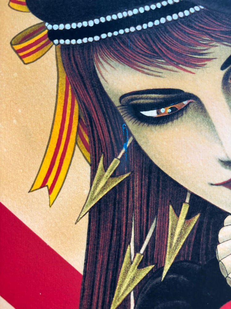 This is an old copy of the large size SIX GIRLS print, which sold out decades ago. It was found in storage at a shop i used to work at, and was a bit damaged, as you can see in the pics. These go for $1000 lately, in good condition, so i’m cutting the price in half for this one.